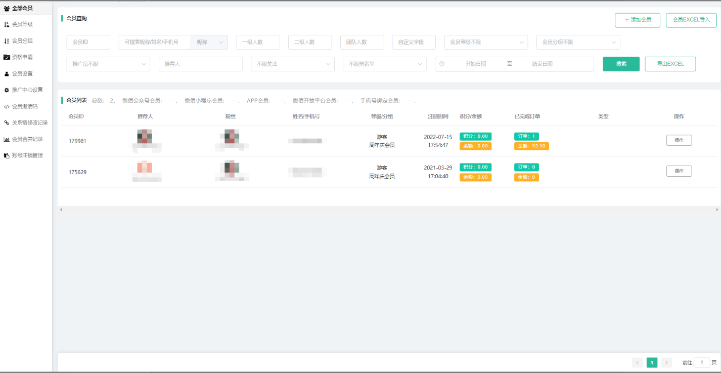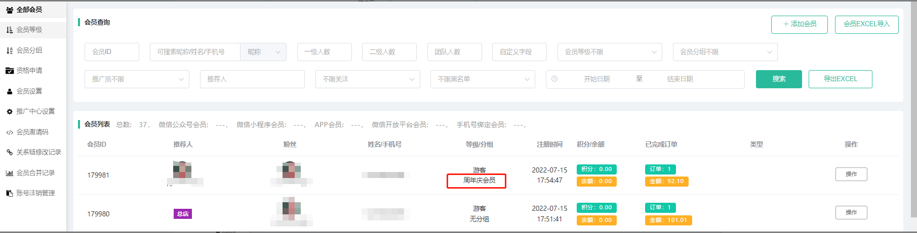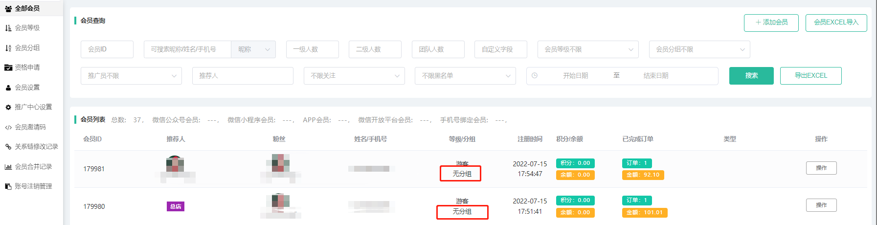 注意:微信端是无法查看到会员分组情况,分组即便于平台查看管理.