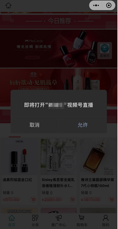 支持小程序直接跳转视频号直播间。在商城首页,商品详情页显示视频号直播间浮动窗口,点击可跳转至视频号直播间